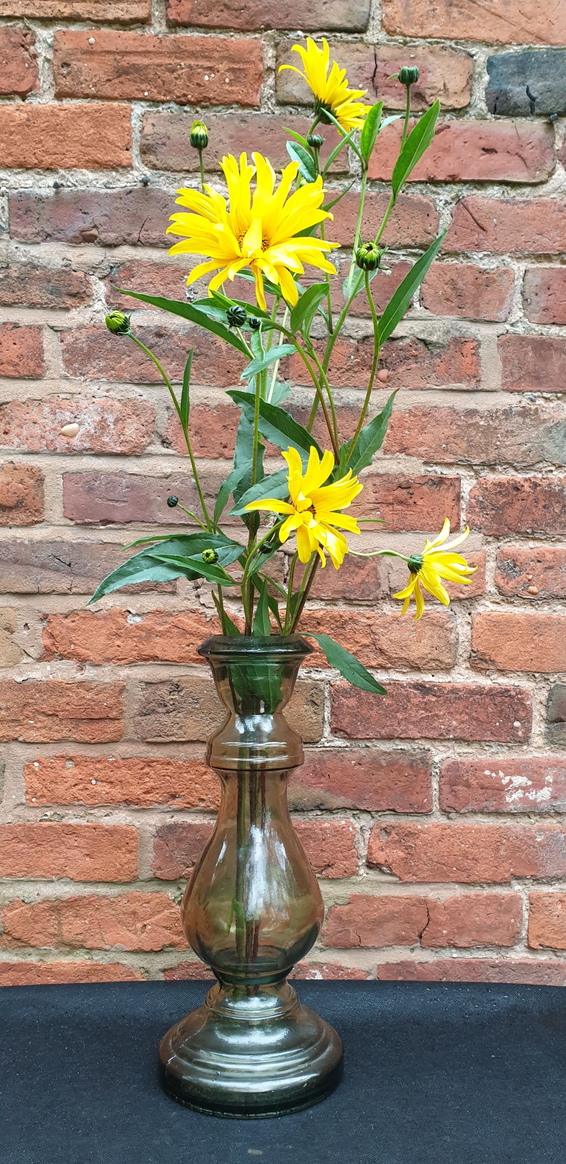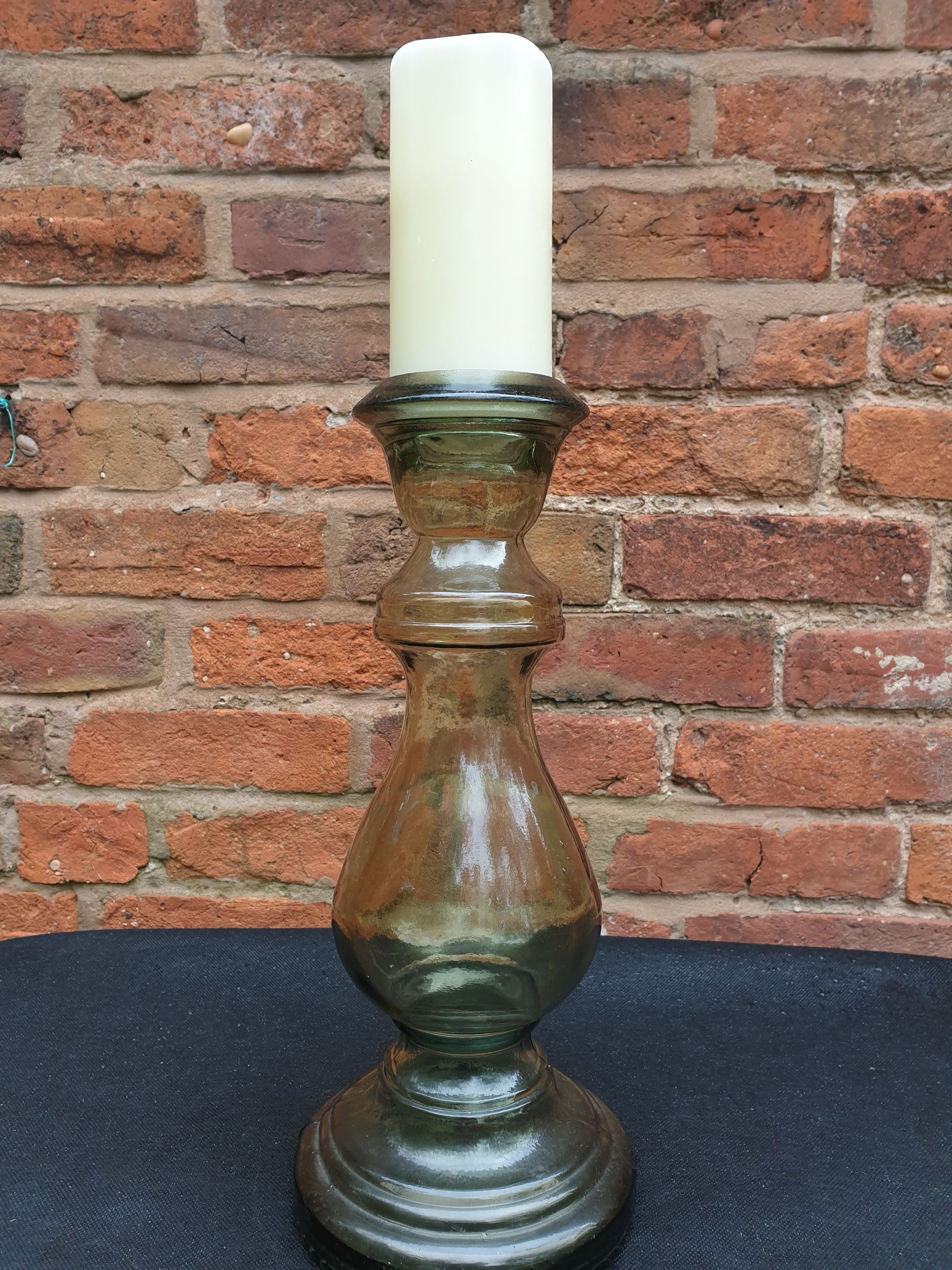 A pair of recycled glass candlesticks. These would make a perfect table centrepiece, they are 16inches tall and have a lovely smokey sort of green colour to them. They also look amazing as vases and will dress your table indoors or out. Shorter ones in separate listing.